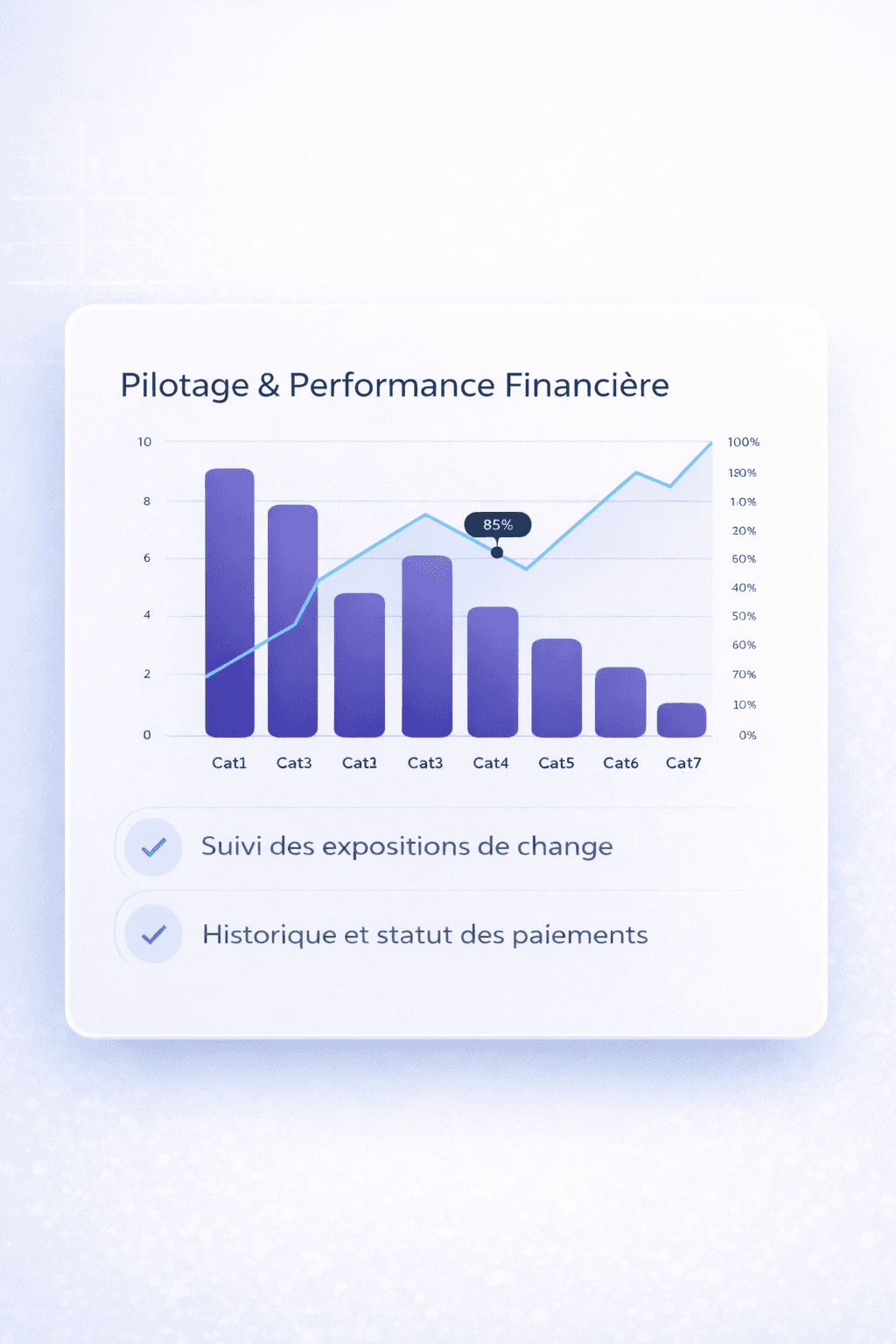 Accédez à une lecture claire et en temps réel de vos expositions, transactions et performances FX. Prenez des décisions éclairées grâce à des indicateurs simples et exploitables