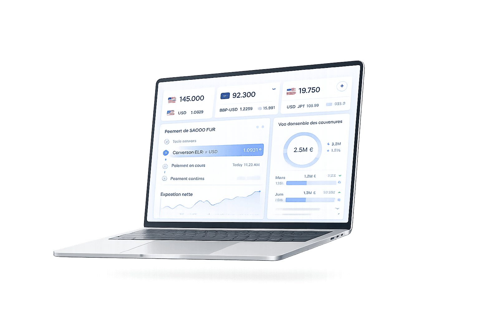 Centralisez vos opérations de change, paiements et suivis de trésorerie sur une seule plateforme. Automatisez les tâches clés et concentrez-vous sur le pilotage stratégique de votre activité.
